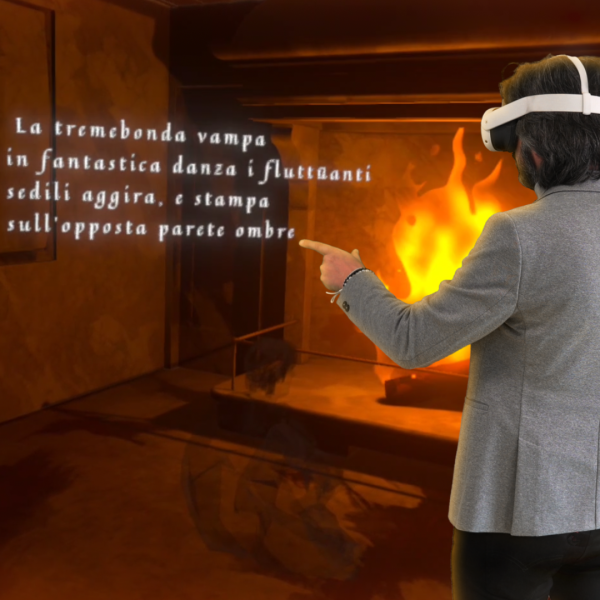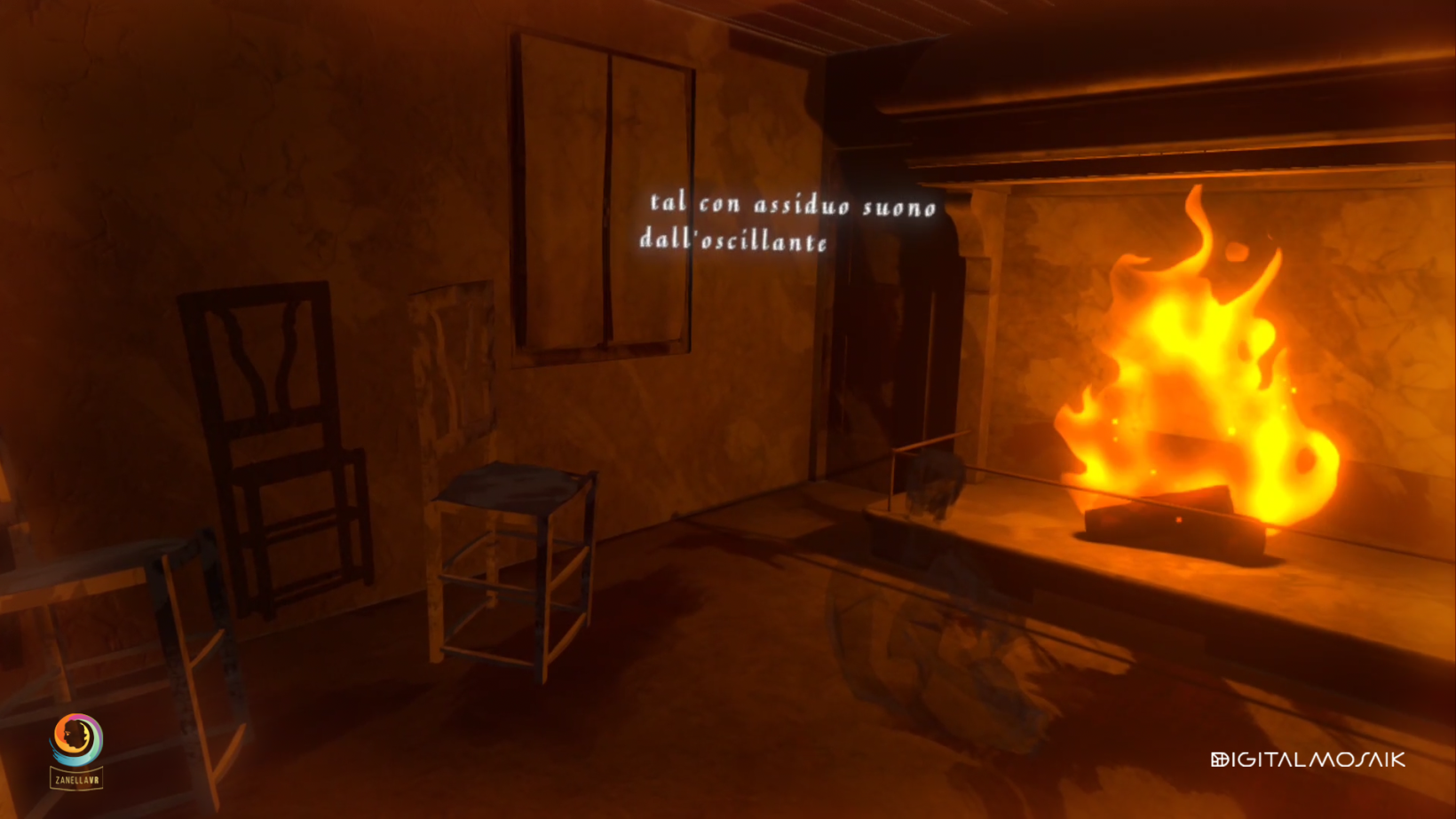 Wearing the headset, the user is transported inside Giacomo Zanella's birthplace in Chiampo, where, accompanied by the poet's theatrical voice, they will experience a journey of discovery of his poetry and the places that inspired him. From initial restlessness to a lyrical joy full of colour, the experience recounts Zanella's metamorphosis through emotions and images that bring his poetry to life.